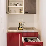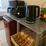 Per la vostra comodità, questa struttura comprende un angolo cottura con un bollitore elettrico, un frigo e un piano cottura.