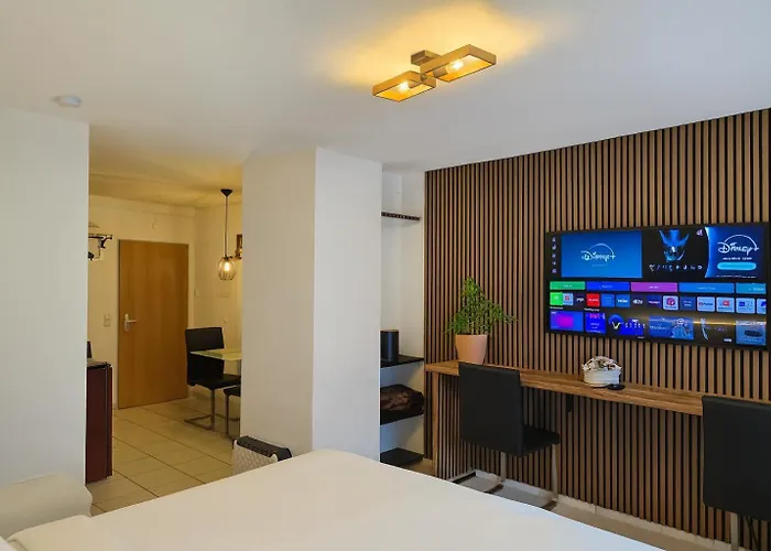Premium Budget Studio Treviri, di 41 m², si trova a soli 1 km dall'Università di Treviri e offre Wi-Fi sia per motivi di lavoro che per svago. Goditi una passeggiata fino alla Basilica Palatina di Costantino, situato a 10 minuti in auto dall'appartamento.